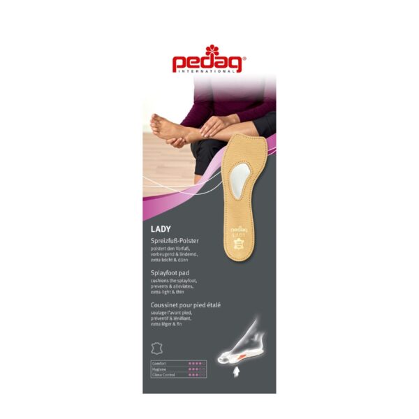 Ontdek het geheim van ontspannen voeten. De Pedag Lady spreidvoetvulling verwent kwetsbare vrouwenvoeten en voorkomt klachten over zere midden voet beentjes en voetzolen. Brandt de bal van je voet? Niet bij Pedag Lady!
