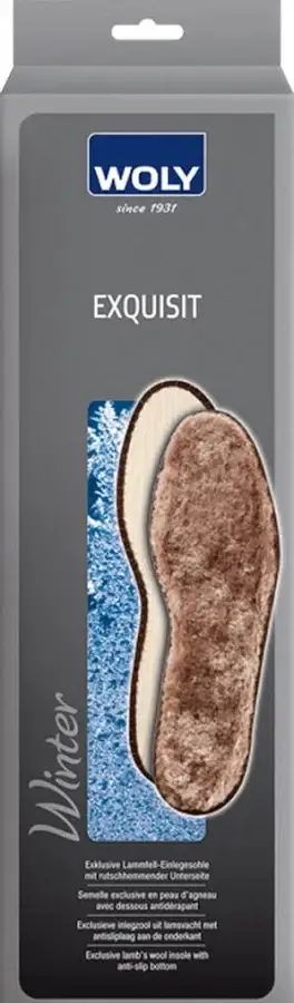De Woly Exquisit is een exclusieve inlegzool uit lamsvacht met antisliplaag aan de onderkant. De bovenkant uit echt lamsvacht zorgt voor een behaaglijk warme voeten en een uitstekend draagcomfort. De vormvaste onderkant met antisliplaag biedt stevigheid en stabiliteit in de schoenen.